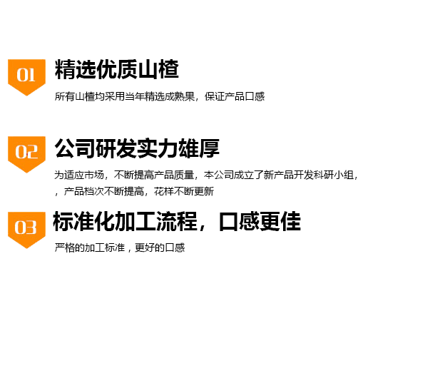 青州市青欣食品有限公司坐落于繁榮的齊魯大地—山東青州,公司實力雄厚,產品品種豐富,是一家集山楂收購、加工、生產、銷售于一體的現代化食品企業。本公司主要生產經營山楂系列食品,如山楂條、山楂片、山楂糕、果丹皮等數個系列多種產品,產品所用的原料經過嚴格篩選, 采用科學配方,精制而成,是中老年、兒童深受歡迎的食品。